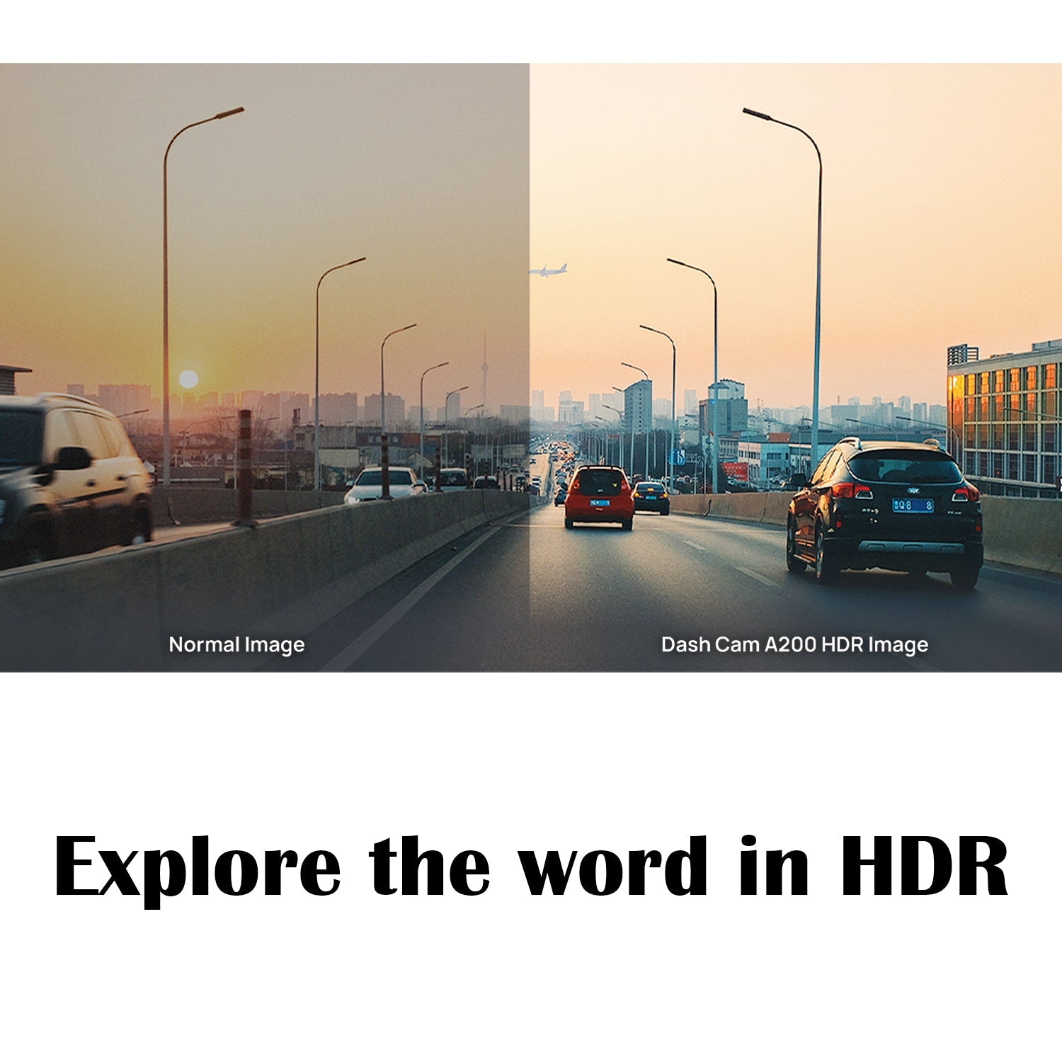 The hardware-level high dynamic range (HDR*) technology preserves the details of highlights and shadows that are often trimmed in regular footage, resulting in a smoother, more delicate, and vivid imaging. Guarantees smoother transitions in lighting and enhances the visibility of important elements like road signs and license plates. It excels particularly in challenging light conditions, such as dimly lit tunnels and high-contrast scenarios.